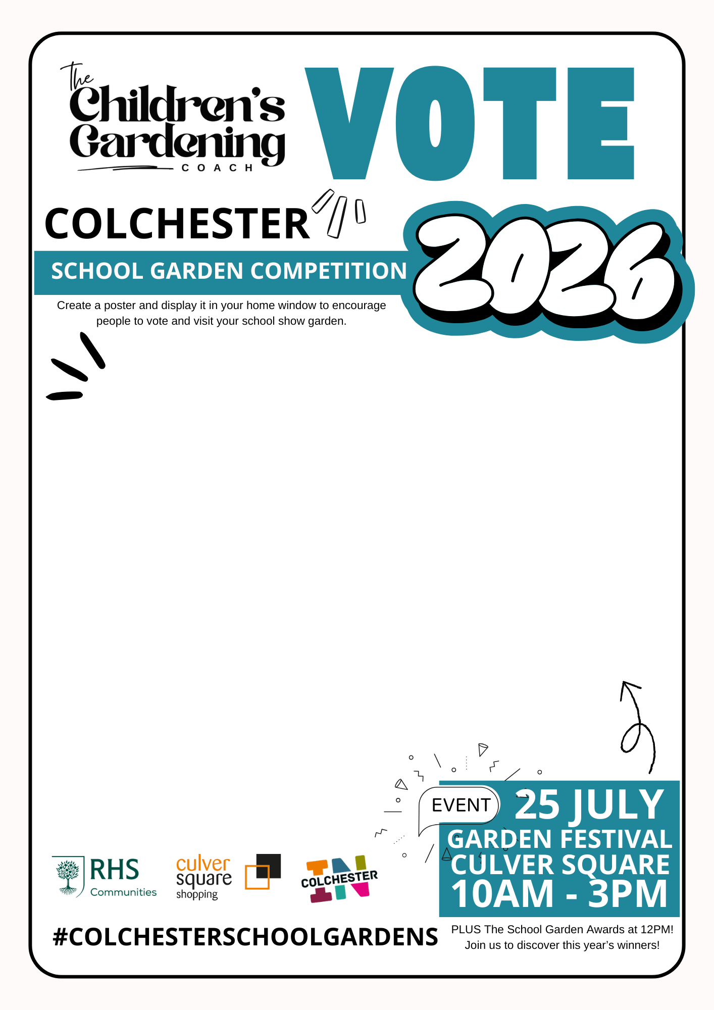 A huge welcome to this year’s Colchester School Garden Competition at Culver Square. We are so excited to have you involved.